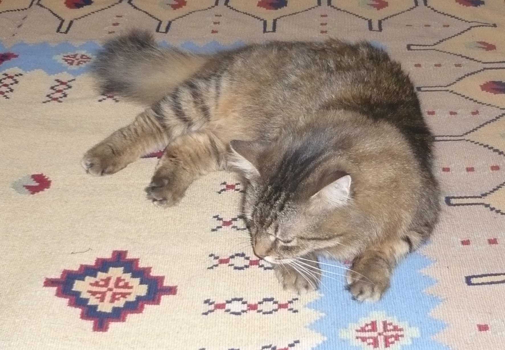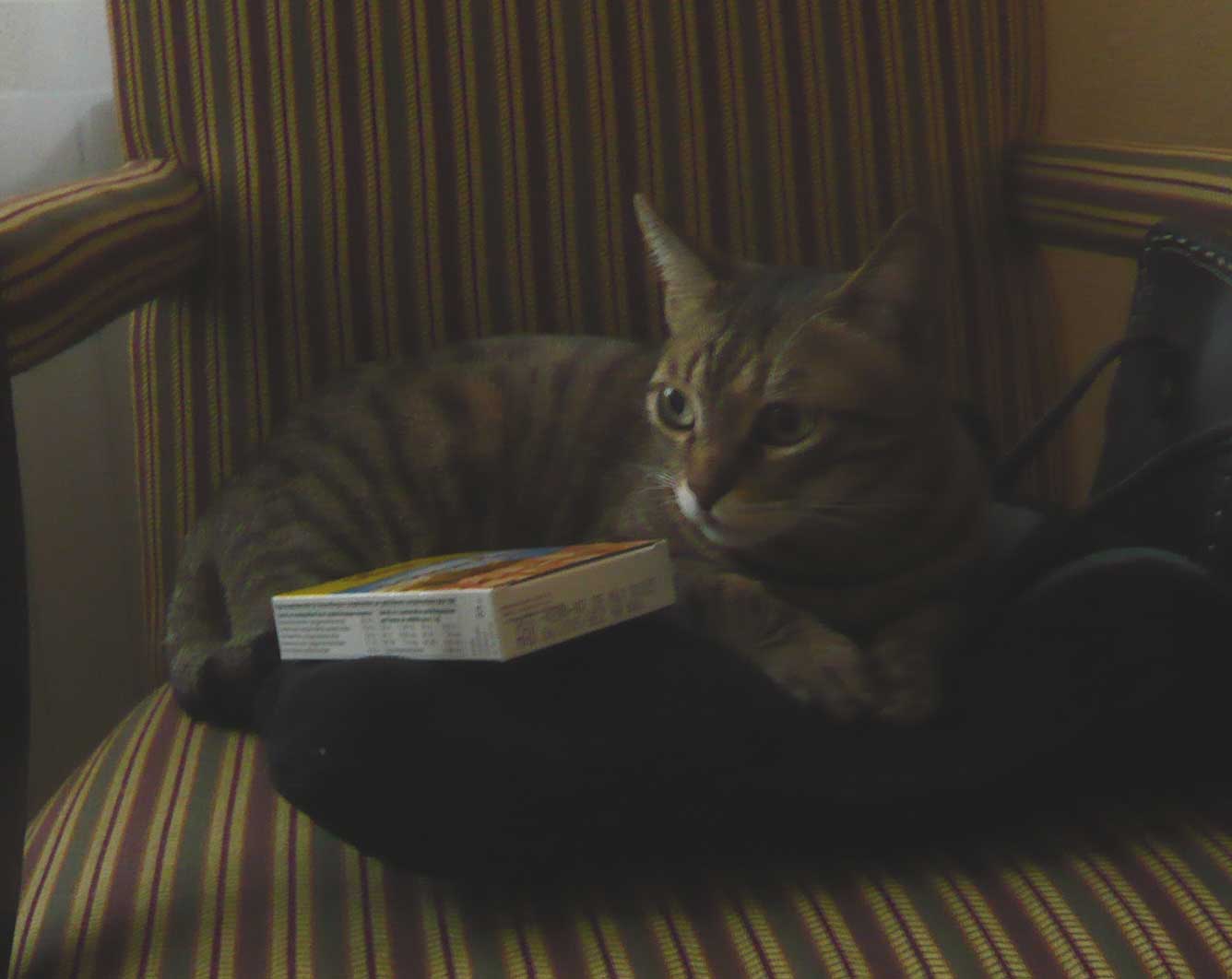 Miss Kitty is a stray- she just walked one day into Carolina's boyfriend's house and applied for a job.