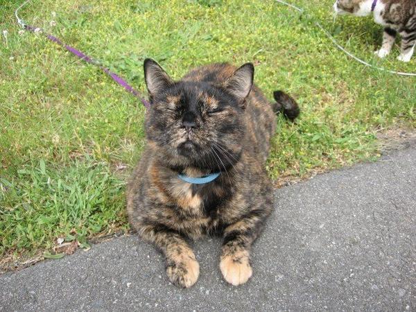 Lately Nutmeg will just not leave me alone! She is contantly on my lap or following me around, giving me lots of headbutts and wanting cuddles. I could carry her around on my shoulder 24/7 and she would be happy! This is really unlike her, as she's always been pretty independant. At night, she gets so close to me that I can't roll over without feeling a warning claw come out and poke me in the side ;)