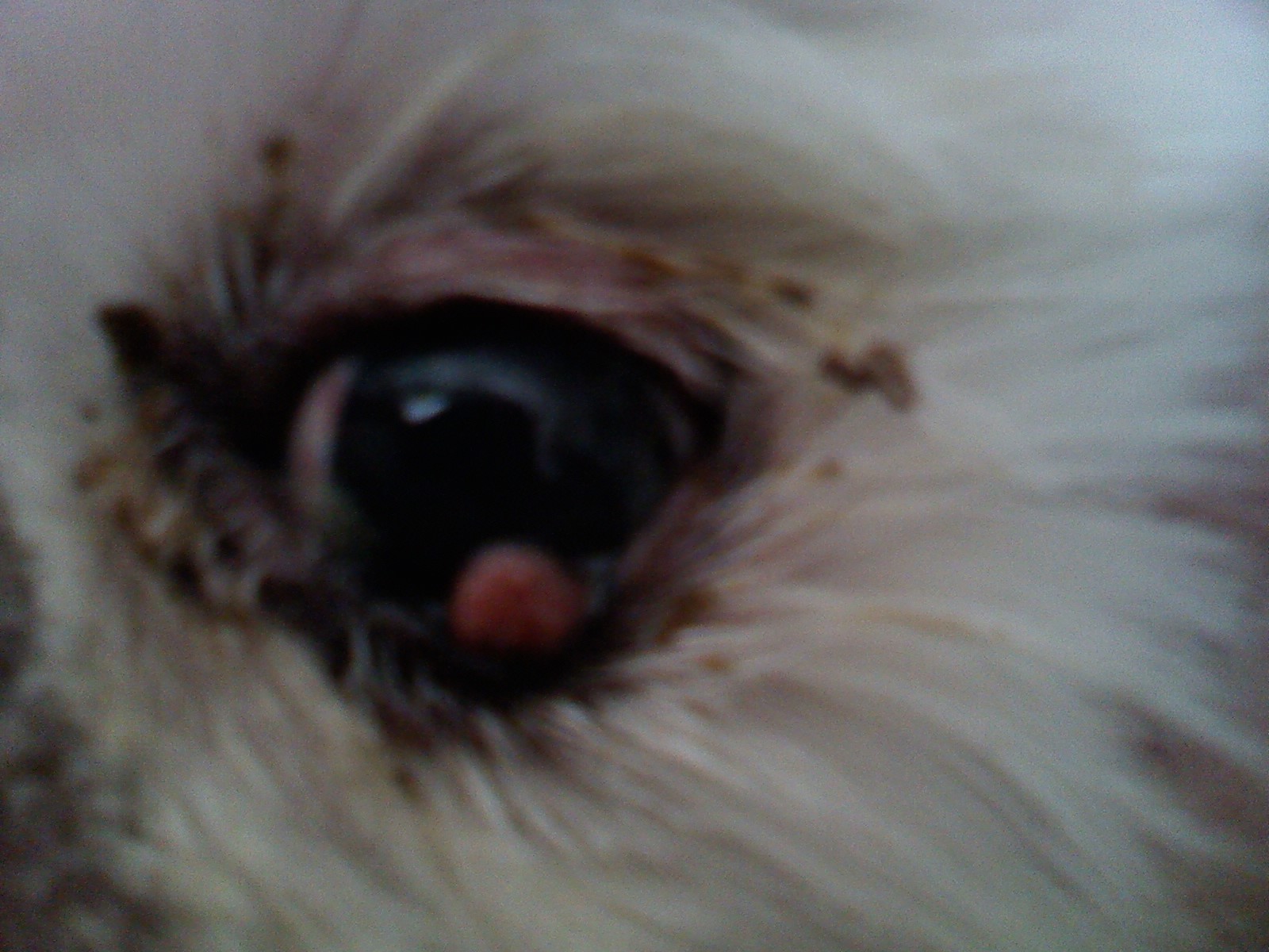 Jadie has a growth on her left eye. We spent $110 at the vet today and found out that we need to have the growth removed. It's on the lower eye area... I'll try to take a picture in a bit to show y'all. She's also got "dry eye" on that same eye.