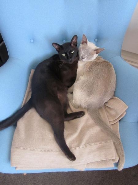 It looks as if they now became ideal kittizens. (Or is it meowmie's cashmere sweater they are sleeping upon?;)