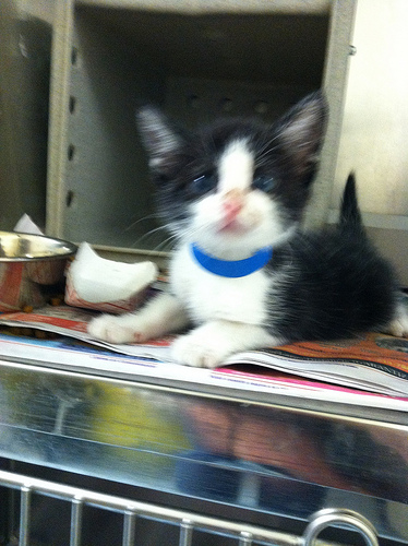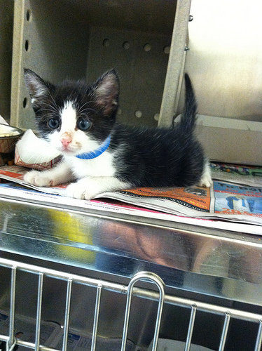 > > This little guy is just too silly! Marco (A16597294) is an adorable 5-6 week old male kitten. He has a black and white coat and the cutest little face. He was found wandering around as a stray with no place to go. Marco is a bit wobbly on his feet and appears to have a mild form of CH. He can get around just fine though and he loves to eat! Photos at: