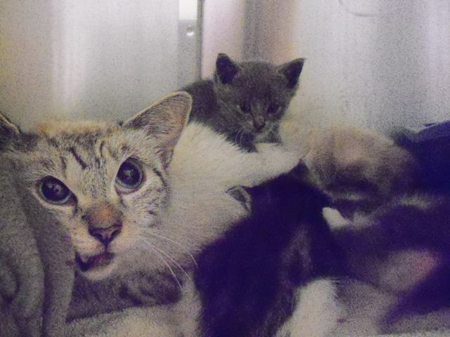 DESCRIPTION: Kira (212308) is currently looking for a foster home or a rescue to help her an her 3 week old babies. Kira has an older broken jaw but can eat fine and can live a long and happy life. She still needs work become social with people.