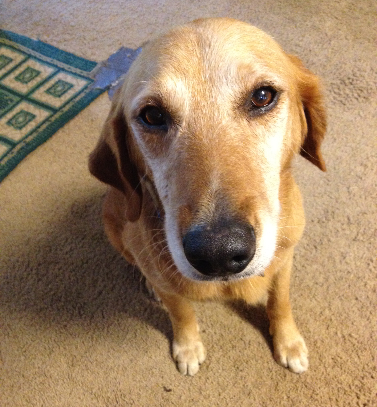 He appears to be a yellow lab/golden retriever mix. But he is on the small side. Under 50# at this time. A golden retriever rescue came to look at him but they didn't think he looks golden enough.