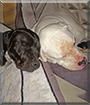 What gorgeous, sweet and loving Catahoula Bulldogs you kids are, large in size, yes, but total mushes at heart...gentle giants for sure! It's hard to imagine a 6 month old puppy weighing in at 105 lbs was the runt of the litter, and we can only imagine how much biggger you'll be all grown up, Doc!:eek::D And wow, how impressive, that at such a young age, you've already earned your CGC, Doc!:cool: And no doubt you're going to shine in your role as certified therapy dog! And how lucky your daddy is, Betty, having you as his loyal and loving protector and devoted companion (your young skin brother too)! How blessed your forever family is, having two such beautiful, gentle and loving furkids in you both, doubly blessed! I had never even heard of the CatBull before today, and look forward to learning more about your historic breed!
