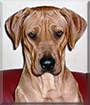 What a stunning Rhodesian Ridgeback you are, Aja!:eek: Your coat is so shiny, like spun gold, and how beautiful are those clear and sparkling gold colored eyes! How great that you get to spend the weekdays with your grandparents, playing in their garden while your young person and pawrents are at school and work. And once home, more fun to be had, walking and napping with your dad, playing with your skin brother/sister!
