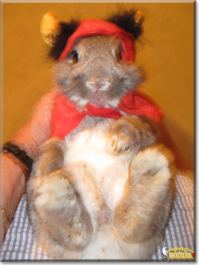 It breaks my heart to think you were taken from your human so suddenly, long before your time.:( But while your and your human's time together was tragically cut short, the impact you had on her life was profound, the pawprints you left on her heart, everlasting. To this day, your spirit lives on in the countless happy memories you and your mom made, in the ashes filled, gold bunny locket she wears around her neck. And I'm sure your mom takes great comfort as well, knowing that your legacy lives on at Bun Space!:cool: How lucky your human was, having a furkid as beautiful, as sweet and loving, as special as you, Skittles BunPants. You truly were one in a million, a treasure, a Pet of a Lifetime!