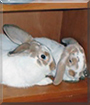 A curious, shy, and extremely hyper bunny. Do not be fooled by his long lop ears, cute face, Sugar is.... a.... boy. Of course we didn't know that until after four months when he began showing "signs". Sugar is known for misbehaving, and getting into all kinds of trouble. One time he even jumped into the toilet bowl! He is always running away from people who try to pet him. Although he's not very affectionate towards humans, Sugar loves to snuggle next to Bun Bun and lick his ears. When he was first brought into the house and confined in his cage, Bun Bun ran up to him and started kissing his face! When the two are together frolicking, they are the ultimate pooping machines. Sugar is the submissive one so he follows Bun Bun everywhere.