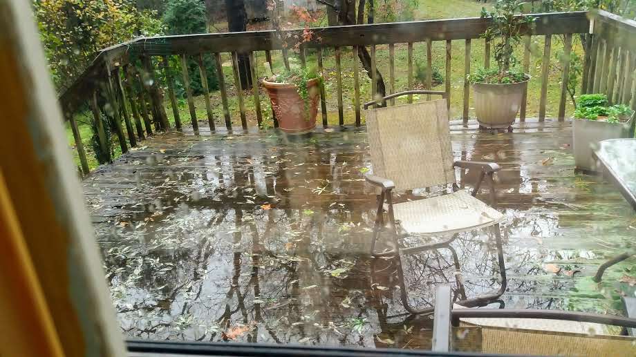This is our deck this morning. The yard, of course, is a muddy mess!