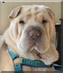 Dearest Calla, what an adorable doggie you are! You have the sweetest Shar Pei face ever, with those small dark eyes and that great big nose and mouth. You are absolutely precious in those great photos. You're so pretty in your hat in the one, and then it looks like you have been sniffing in the sand on the beach there! You have the most delightful personality, too, and you make your dear family members smile with all your energy and antics. You and they all love each other very much, don't you. What a wonderful love-filled home you share!