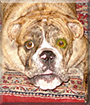 What a beautiful, most adorable English Bully boy you are! Those big, brown eyes of yours could melt the hardest of hearts, Duke! And oh, what I wouldn't give to cover that wrinkly, smooshy face of yours with a zillion kisses!:D It's no wonder your humans are mere putty in your paws! Who could deny you anything? You're irresistible!:D What a lucky family is yours, Duke, having a furry family member as sweet and cuddly, as joyful and life loving as you to call there very own! In body and heart, inside and out, you're just as special as they come...simply the best!!!