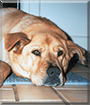 And what a delightful personality you have. Right from the start you've sat in your dear person's lap, even now when you're 70 lbs.! You're loving, loyal, affectionate, and a great guard dog. And you have a rather unusual habit:you like to chew and eat wood! You love going for walks, playing tug-o-war, and bothering your older Yorkshire-terrier "sister" Chelcee. You and she and your dear people all love each other very much, don't you. What a wonderful love-filled home you share!