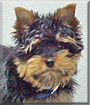 Dearest Cody, you are beautiful, utterly adorable! What a sweet, gorgeous Yorkshire Terrier you are! You're so pretty, and you have the most delightful personality, too. You were the perfect Christmas present for your dear Mom. She was so happy she was crying! You are full of energy and make Mom and all your family members smile with your antics. You love being held by Mom and Grandma, but you're scared of Grandpa when he gets on the floor and goes "Ruff Ruff." You go wild, but when he lays down, you chew on his hair! You and your housemate Amy, a.k.a. Amy(A) Marie(M) Young(Y), are your family's rat dogs! You sister lives around the corner, and you love to play with her. You and she and your family members all love each other dearly, don't you. What a wonderful love-filled home you share!
