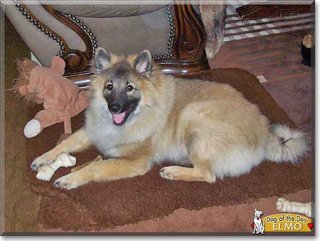 What a gorgeous German Spitz puppy you are, Elmo! Just look at that smile!:D And how magnificent if your plush coat! What I wouldn't give to cuddle up next to your fluffy self on a cold winter's night! As is the case in the UK, we here in the U.S. also know your beautiful breed as a Keeshond! But no matter your official title, you're beautiful, inside and out!