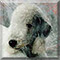 Dearest Spanky, what a beautiful Bedlington Terrier you are! That curly white fur is so pretty, and you have the sweetest face with those grey ears and lovely big dark eyes. You have the most delightful disposition, too! Everyone you meet is your friend, and you are your dear person's hero, having even saved his/her life one day!