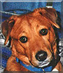 Dearest Ginger, what an adorable Rottweiler/Golden Retriever you are! Such pretty-colored, soft-looking fur, and such a sweet face with those lovely big brown eyes. And what a sweetie you are! I'd love to get one of your "Puppy Hugs!" You're full of energy and make your dear people smile with your antics. You and they all love each other very much, don't you. What a wonderful love-filled home you share!
