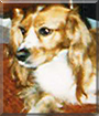 Dearest Cassie, what a beautiful Cocker Spaniel mix lady you are! Your long, silky fur is a gorgeous mix of light brown and white, and you have the sweetest face with those long, LOOONG ears and lovely big dark eyes. And what a story you have to tell! You were hit by a car when you were just one year old. You suffered serious injuries, and your dear mommy didn't think you'd make it. But after extensive surgery and medical work, you survived, I'm so very glad and grateful to learn. Now you're doing just fine, and mommy spoils you! She doesn't have human children, so you and your two bird buddies and sister cat are her children. You and they all love each other very much, don't you. What a wonderful love-filled home you share!