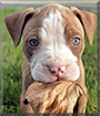 Be still my heart!!! What a beautiful Bulldog x Pittie jbaby boy you are, Lennox; precious beyond words! And oh yes, that pic of your wee little self gently holding that leaf is beyond heart-melting! And in true Bully breed style, you're just as sweet and gentle and loving as can be, a total mush!:D Thanks to pups such as you, tributes such as your human's, slowly but surely that misconception that your breed is one to be feared is falling to the wayside! What a fine Bully ambassadog you are, Lennox! You do your beautiful breed proud! Yes indeedy, your human is one lucky soul, having a furkid, a best friend for life in you, Lennox! You truly are a treasure, sweetheart, beautiful inside and out, simply the best!