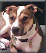 I was so sorry to learn you were alone, hit by a car. I'm so very glad and grateful that your dear person-to-be found and rescued you. She took you home and posted "found dog" notices, but no one claimed you, so you settled in at home as "her" dog! You saw the vet and were treated for your injuries, and all was healed. Now you are a spoiled girl (as you should be!), knowing just which bed is YOUR bed. You're full of energy and run like the wind, and you're also quite sweet and calm. You and your person love each other very much, don't you. What a wonderful love-filled home you share!