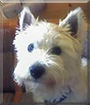 Dearest Bonny, what an adorable West Highland Terrier you are! That fluffy white fur is so pretty and looks so soft, and you have the sweetest face with those cute perky ears and lovely big dark eyes. You have a delightful personality, too! You're very sweet and very playful, and you know several tricks. You are the best dog in the world to your dear person. You love each other very much, don't you. What a wonderful love-filled home you share!