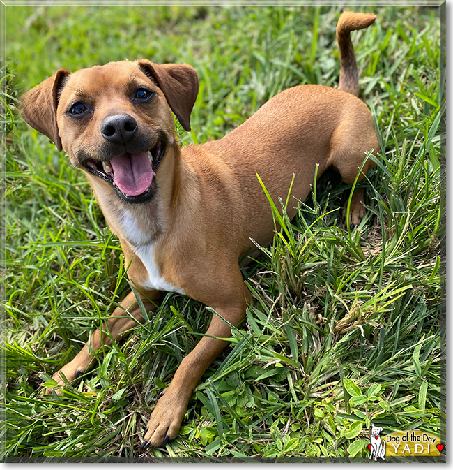 Thanks for the BIG smiles, sweetheart! Meeting you today has been such a treat! I hope you enjoy a very special day of celebration...playing endless games of fetch and tug of war; chowing down on your fave foods and treats; being loved and pampered to pieces; spoiled EXTRA rotten! Lots of love, hugs and smooches to you, precious Yadi, our very special and most deserving Dog of the Day, EVERY day!!!:love::love::love: