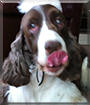 What a gorgeous English Springer Spaniel boy you are, Teddy! Your purebred creds are so evident in your beautiful coat and coloring, those trademark long, velvety ears! And just as your Mom says, you are SO photogenic! That shot of you all decked out in your Santa Paws gear, posing so proudly for the family Christmas card, has me smiling from the inside out! It's no wonder you love posing for the camera, Teddy! If I were as gorgeous and photogenic as you I would too!:D
