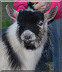 Dearest Golden Boy, a.k.a. Dinsmore Farms Golden Boy, are you ever an adorable Caramel Pygmy Goat Buck! You are absolutely gorgeous indeed in those great photos, and thank you for sharing them with us. Your coat is beautiful, mostly silver and black but we can see some of that caramel color around your right front leg. And what a sweet face you have, with those perky ears standing up and those lovely big brown eyes, and that cute mouth with what looks like a smile, and probably is, complete with your tongue sticking out! And what a delightful personality you have! You are funny, a real character, sticking your tongue out for publicity photos. You are quite a champ in the show ring! You're registered with the National Pygmy Goat Association, and you have two Reserve Junior Champion Buck wins. You're only eight months old, and I bet there are many more show ring wins ahead for you! You and your dear person all love each other very much, don't you. What a wonderful love-filled home you share!