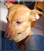 Dearest Gina, you are absolutely adorable! What a beautiful Pinscher-mix lady you are, just three years old, so precious indeed! That warm brown fur is so pretty and looks so soft, and you have the sweetest face with those lovely big brown eyes. Thank you for sharing those great photos with us! Your beauty and your personality come through so well in them. You may not like to look at the camera, but you're still a gorgeous model!