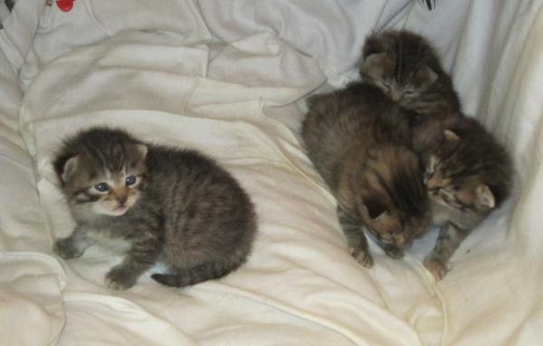 The kittens are adorable! I hope the mommy cat will keep getting better and better!