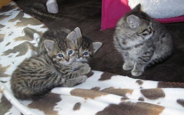 Mama kitty looks so happy in the picture with the two little ones playing. :)