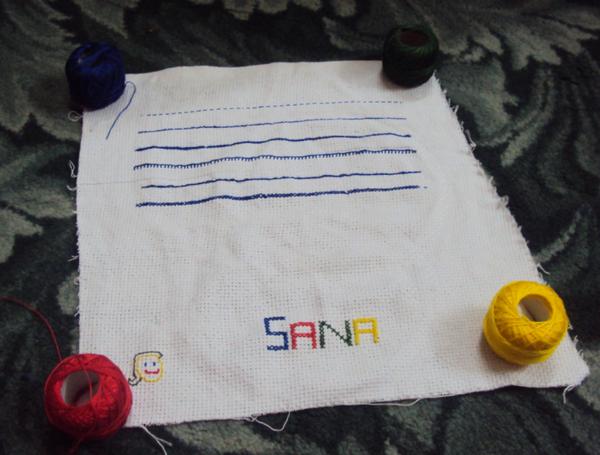 This stitching is done in our clubs and my grade is the only one that is going to have clubs, sorry for the others but they are going to study :( I have no idea why but the clubs have ended for the other classes. Our teacher told us some great news, she has decided that we do a little project, meaning we have to do embroidery on a bag, a pouch, an apron, a pin cushion or a cushion. I chose two, a pouch and a cushion. I am so loving these clubs!:love:
