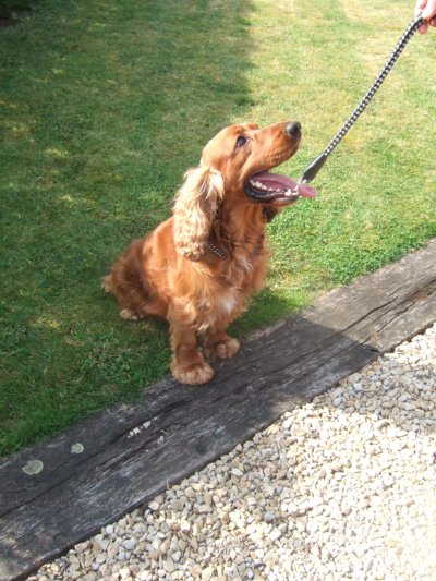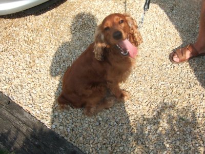 My friend owns a beautiful brown English Cocker Spaniel. His name is Tobey.