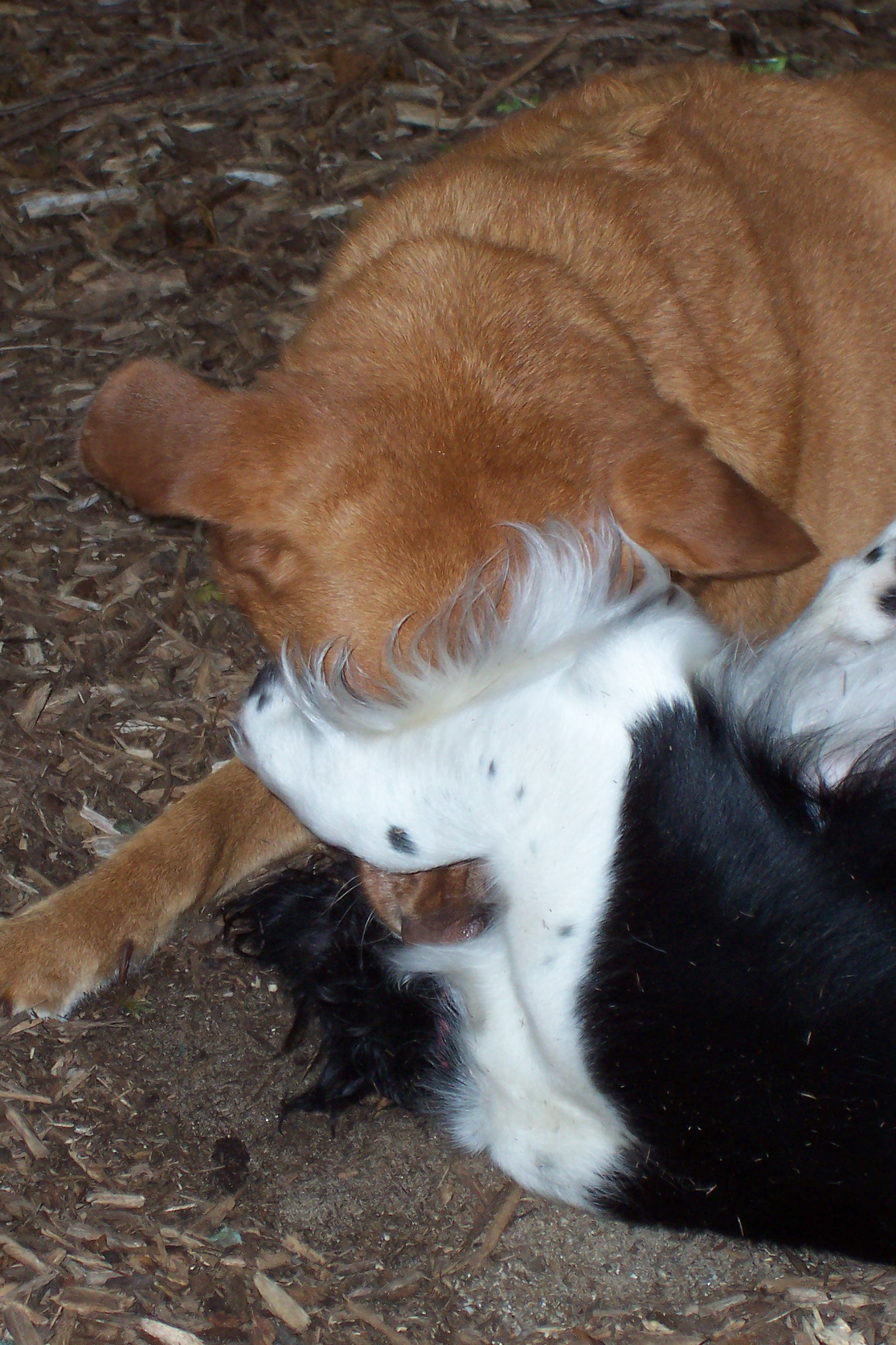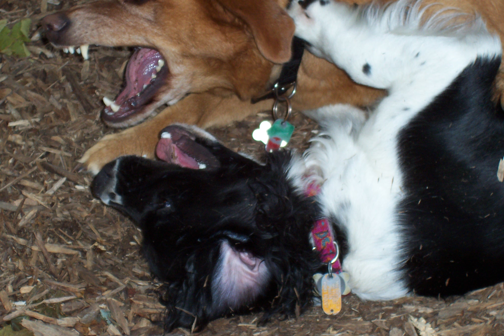 Winchester wasn't that bad, he would play fetch with us and demanded to get a good belly rubbing a few times a day. He is six years old. We got a puppy Lou Lou in Feb. 2006 and he has spunked right up, the puppy makes him stay active, good luck sleeping when Lou Lou is awake!! Notice the lay down fighting, that's because Lou Lou will bite his feet not because he is being lazy! But I also wonder if your dog might have a thyroid issue. I have thyroid disease and get very tired when I need my meds adjusted, maybe you should talk to your vet about that and they can do blood work to check it!