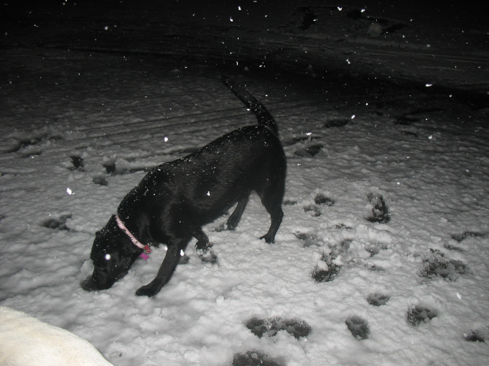 I went outside just to look and see how deep the snow is and I see two black labs playing in the snow! Now how do you expect me to go back inside when I see that? So I put on my boots, coat, hat, mittens, and grab my camera. I was throwing snow balls for them and stuff, they loved it! They'd catch it, eat it, and wait for me to throw some more! So..here they are, the pictures and the videos!