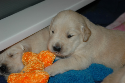Kara you have such gorgeous, breath-taking dogs! I love their coloring! This realllly makes me want a Golden Retriever of my own!The little babies are just too cute for words!