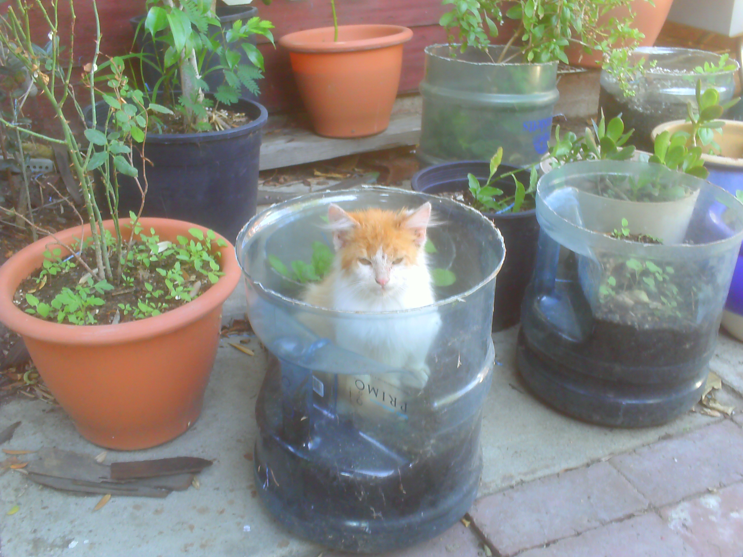 Hey, perfect ktten container. And precious kitten. You'll need to get a bigger water jug for when the kitten is a cat.