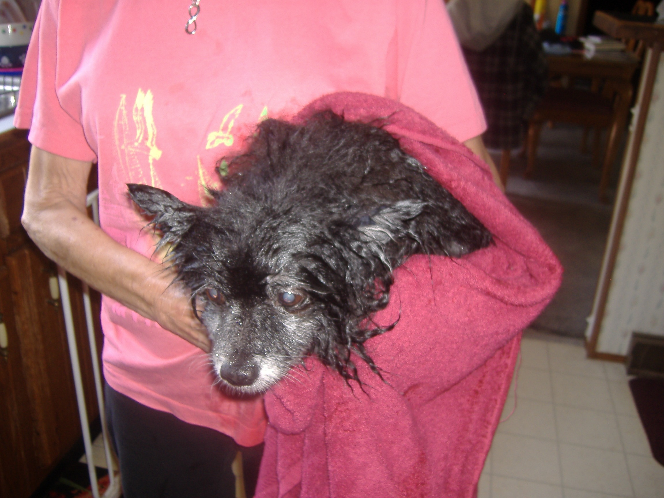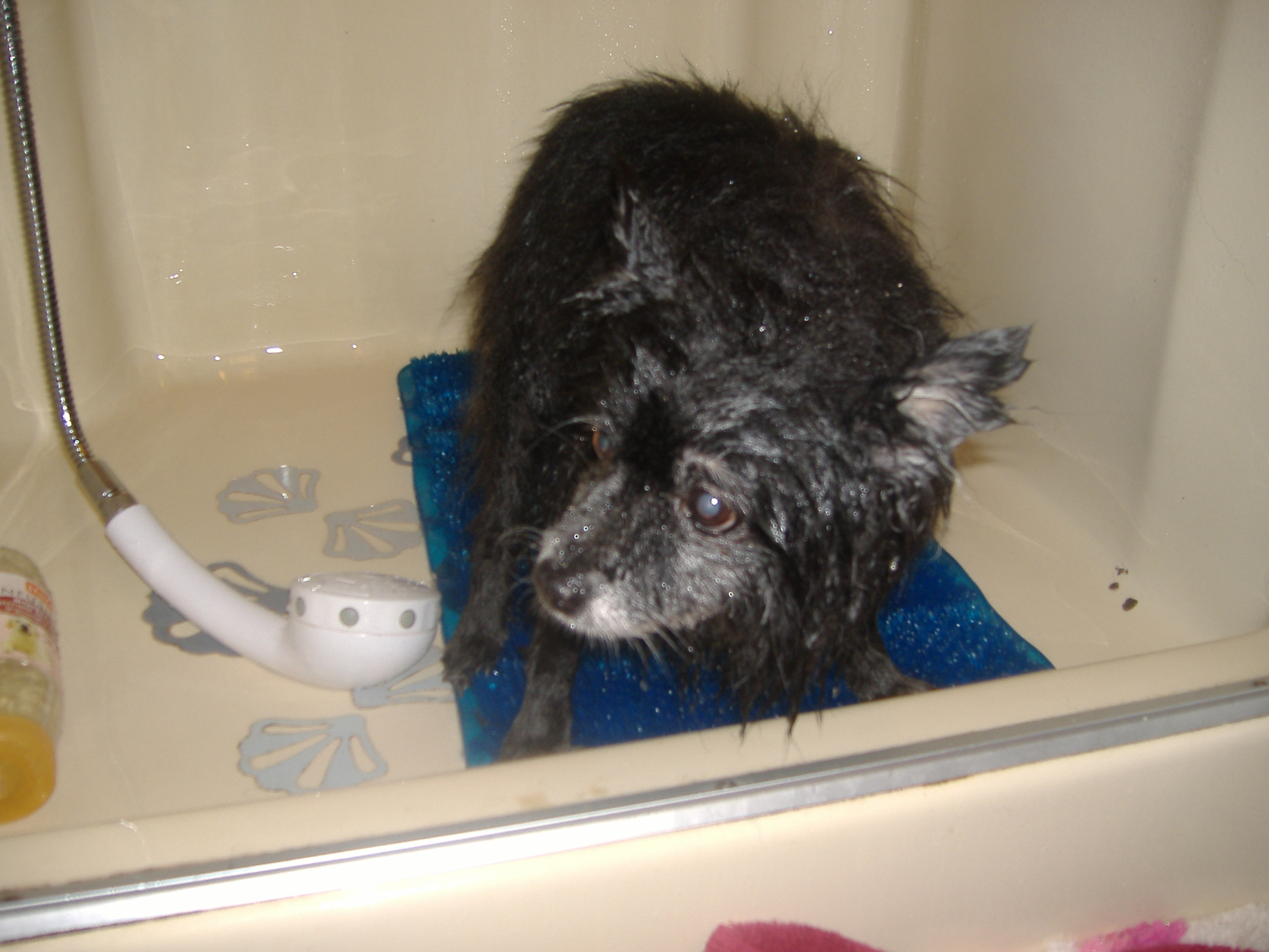 Well, after his fainting episode in the heat a few weeks ago, I decided not to take him any more either. That whole experience seemed to take a lot out of him and he still wasn't back 100%, but desperately needed a spa day, so I checked with the mobile groomer again. I fully expected her rates to have gone up, but they hadn't, so I scheduled her to come out. So Sparky had a new spa experience on Wednesday.