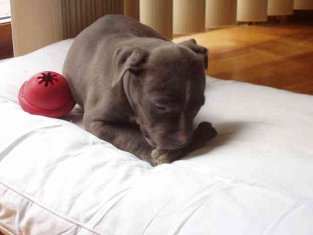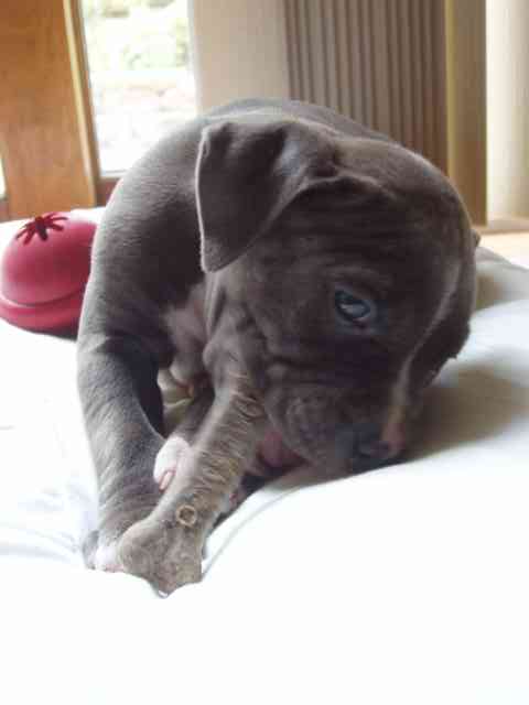 I LOVE pit bull puppies. My pit bull puppy grew up way to fast. Rex is adorable. Is he all grown up now? I would love to see more pictures of him.