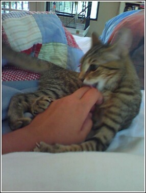 I apologize for not posting any pictures since we first adopted Amber, but I left for Europe shortly after, and as most of you know, no longer have a camera to use currently. I managed to take four pictures with my phone (it's not very good at action shots though, and she NEVER stops moving!) so I just thought I'd share.