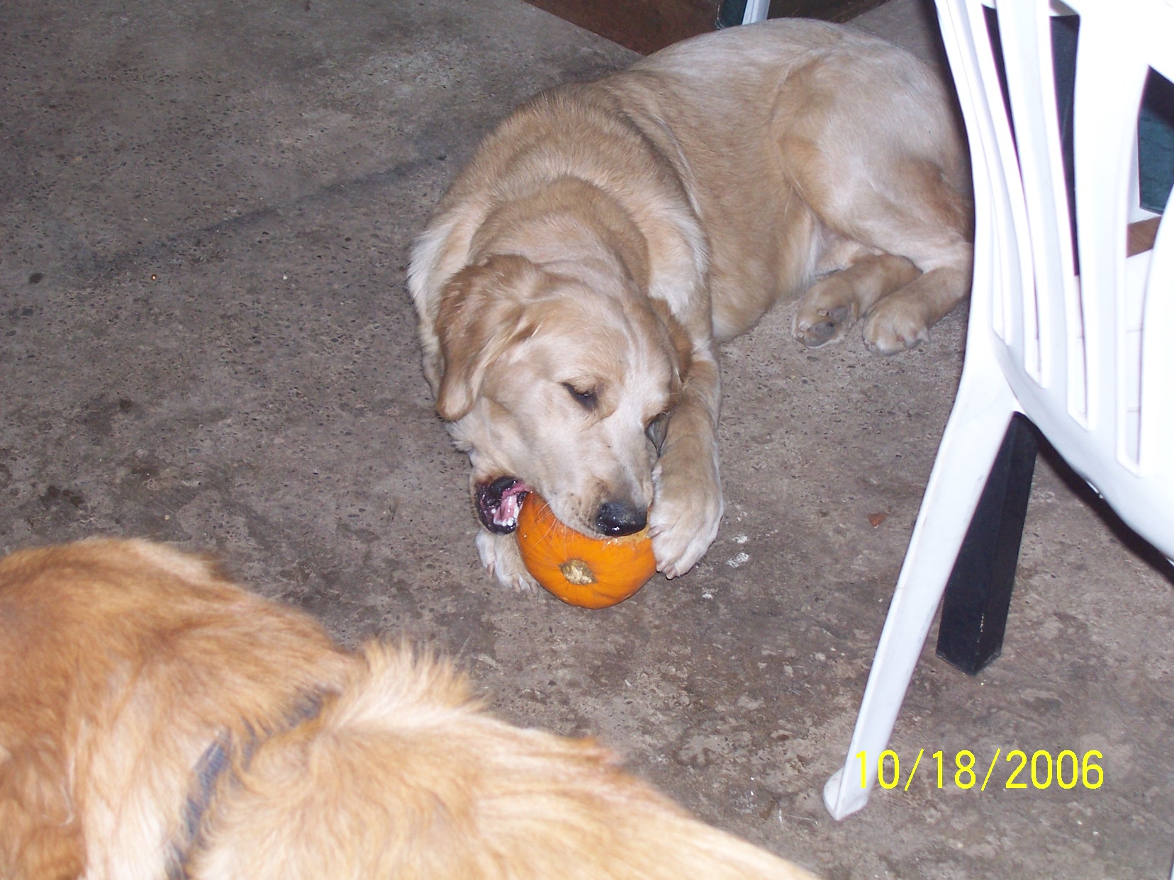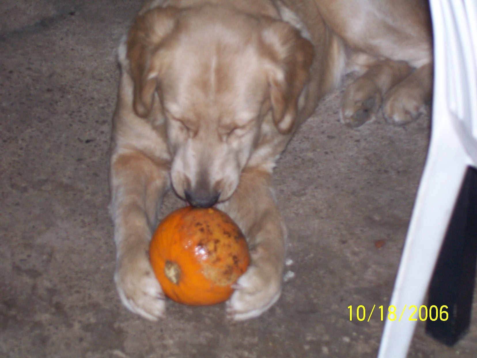 Sorry they arent really good its almost impossible to get good pics of the dogs they never sit still or listen when i have the camera out.. but i thought i would try anyway. these are pics of gracie who brought me what i thought was an orange ball then i noticed she stole a pumpkin! the other dog is Chance. i will send a few more.