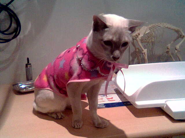 Happy Birthday pretty Cleo!! You look mah-vel-ous in your beautiful pink fleece collar and lace. Your meowmie is a very clever lady and you are wonderful for modeling her lovely creation.