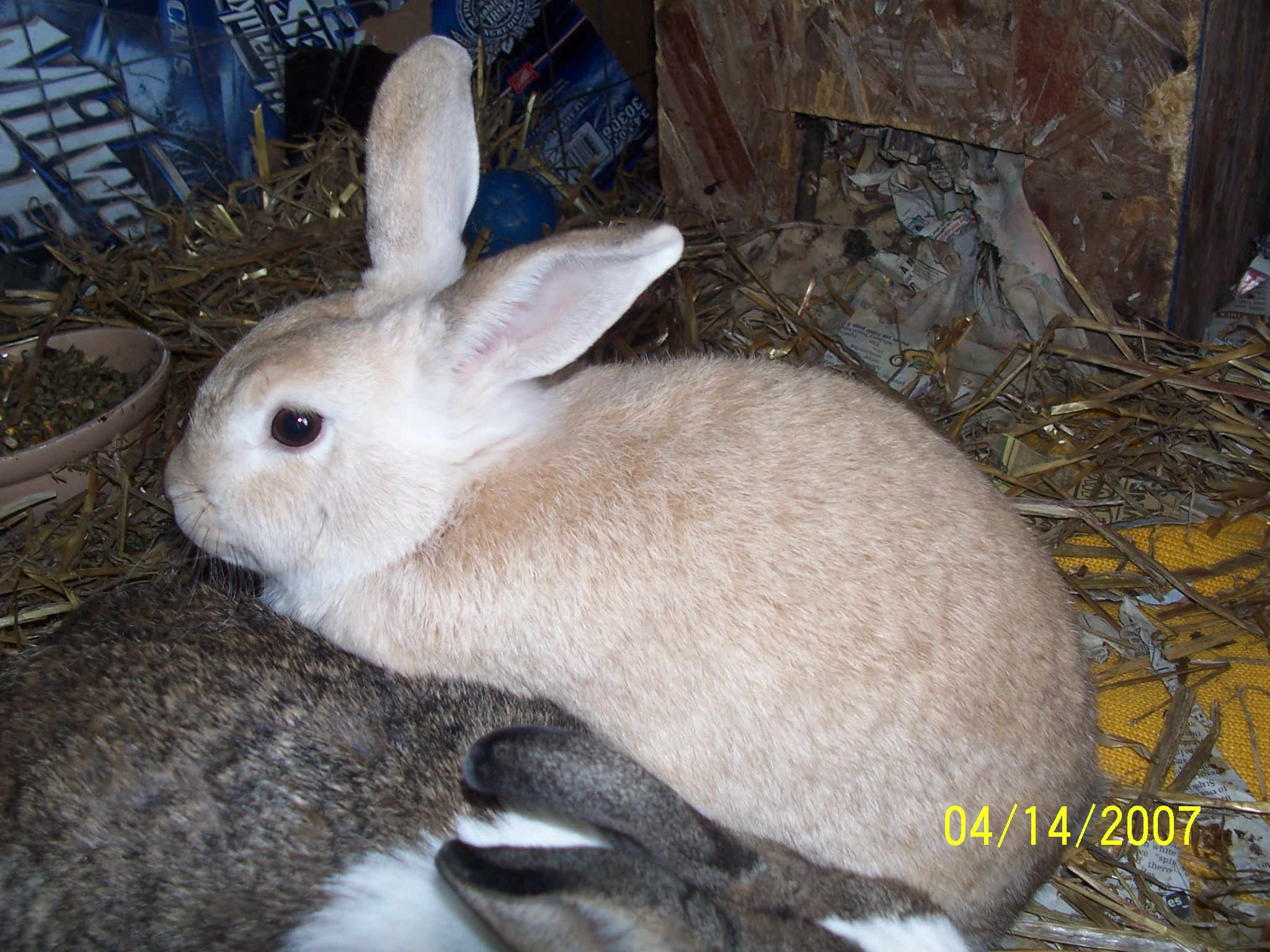 My rabbit is the tan one. Her name is carmel. the other is her friend Abby. the last ones are a baby squirl that was in with the rabbits!!!