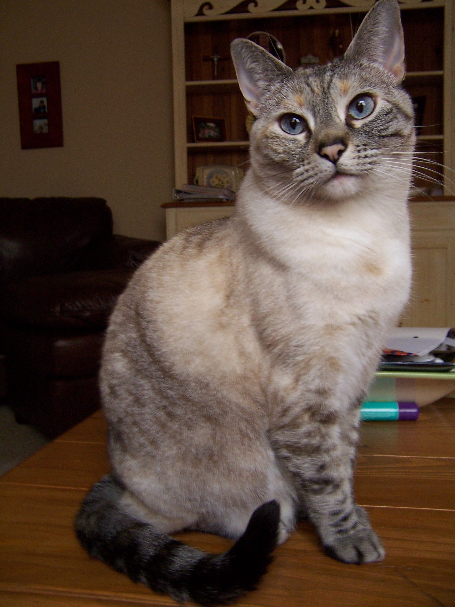 Thank you, krazyaboutkatz, for confirming Nellie's breed as Lynx Point Siamese! I just wondered, since she has so many spots, if she is not a snow bengal, or a seal lynx point bengal. She isn't, though, is she? She is a Lynx Point Siamese as was decided, correct? You are very welcome for the comment about Pearl. That is very cute that she can say, "Mama." Nellie does not talk that much, however, she does talk ALOT when she wants something, as all kitties do. For example, when she wants to play fetch with her ball she will meow LOUD meows, when she wants to go outside, LOUD meows, and when she is on her way to the vet, LOUD meows. Although I don't think she meows as much as a typical Siamese, she meows persistently and LOUDLY when she wants something. Very LOUDLY. She has a Siamese meow, it seems. Well, thanks for all of your help! Wishing you and Pearl and your other lovely kitties a purrfect day!