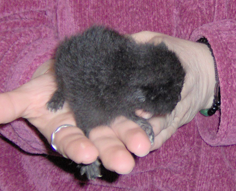 LB (Little Bear) has been eating like a horse. She loves the kitten food, maybe it will put a little weight on her. She has become more active and will come out of her nest to say hello. You can almost the blue-green i LB's eyes. I am a real sucker for green eyes. Lucky is up 99 grams and active. the eyes are open most of the time now. Not bad for two weeks old. We like too watch TV like this. LB on me and Lucky on LB.