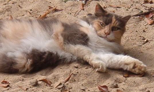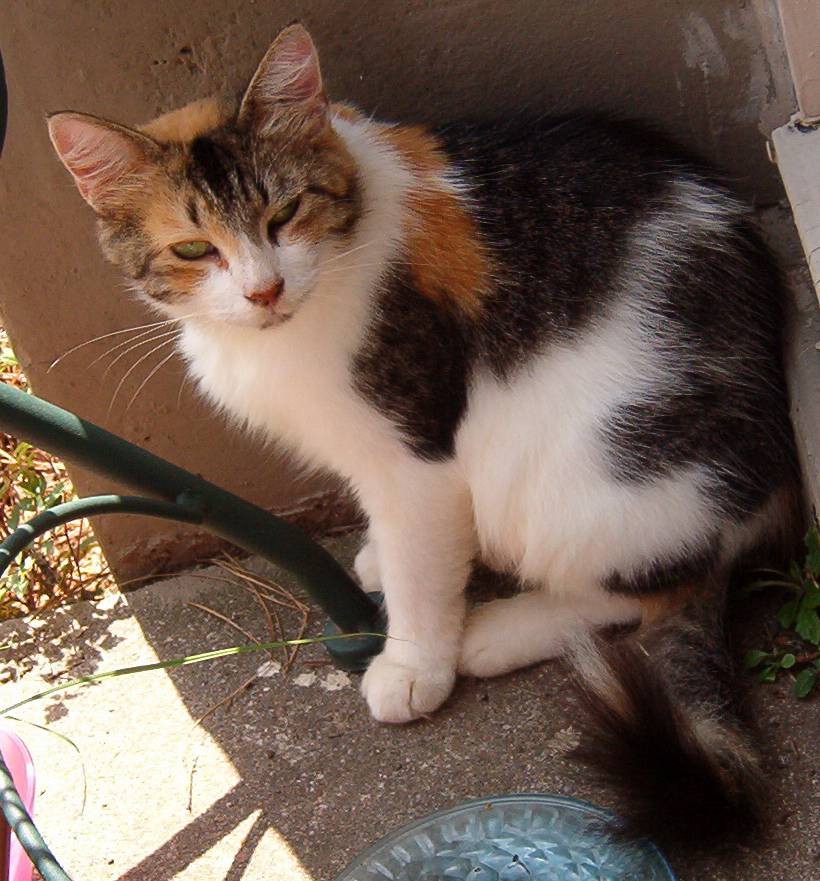 Little Mamma is a fixture out front. She's been around nearly 4 yrs now and still won't let anyone pick her up. It was a fluke that I was able to get her to the vet! She was the Matriarch of the apt complex we live in. She had so many litters before we got her we worried each time if she'd survive another pregnancy. She and 2 of her boys from her last litter hang out out front all the time.