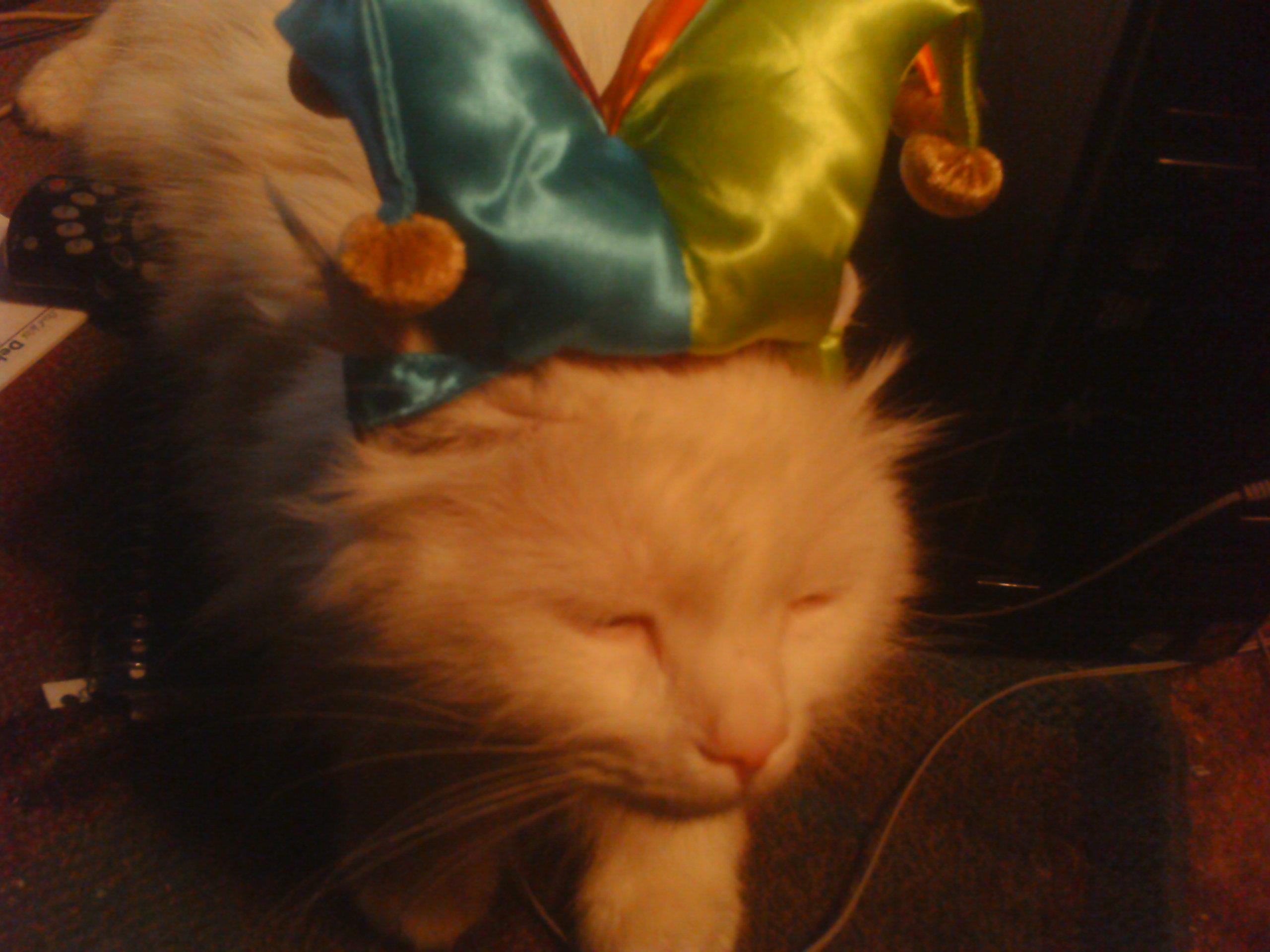 No, the jester's job is to make other people happy! Poor aboooooosed kitty!