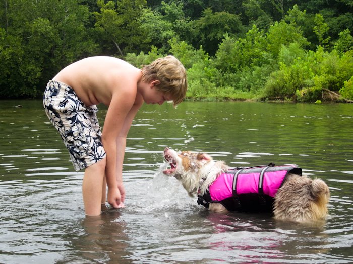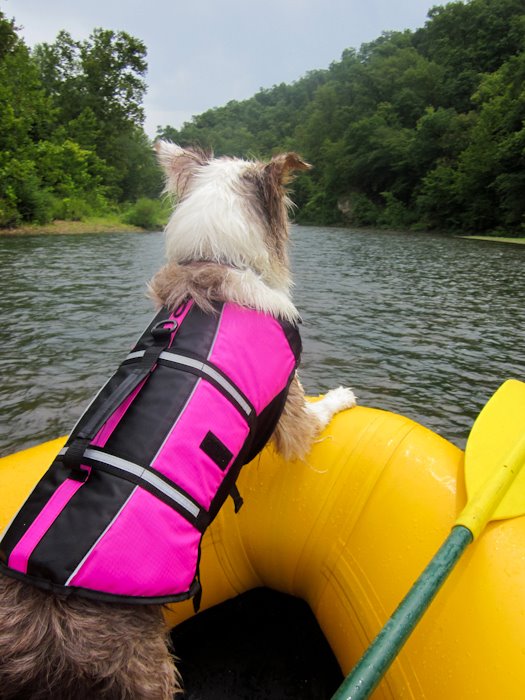 How many of you take your pup on float trips? I figured the life jacket was very necessary for her considering her history of not wanting to get out of the water (even when called), and I was concerned that the current at a few points would be too strong for her, especially if she was exhausted from swimming and running around so much... there were a few times she was trying her hardest to swim against the current but was just too tired to so we'd have to bring her back to shore and tie her to one of the rafts... and boy, she hated that.