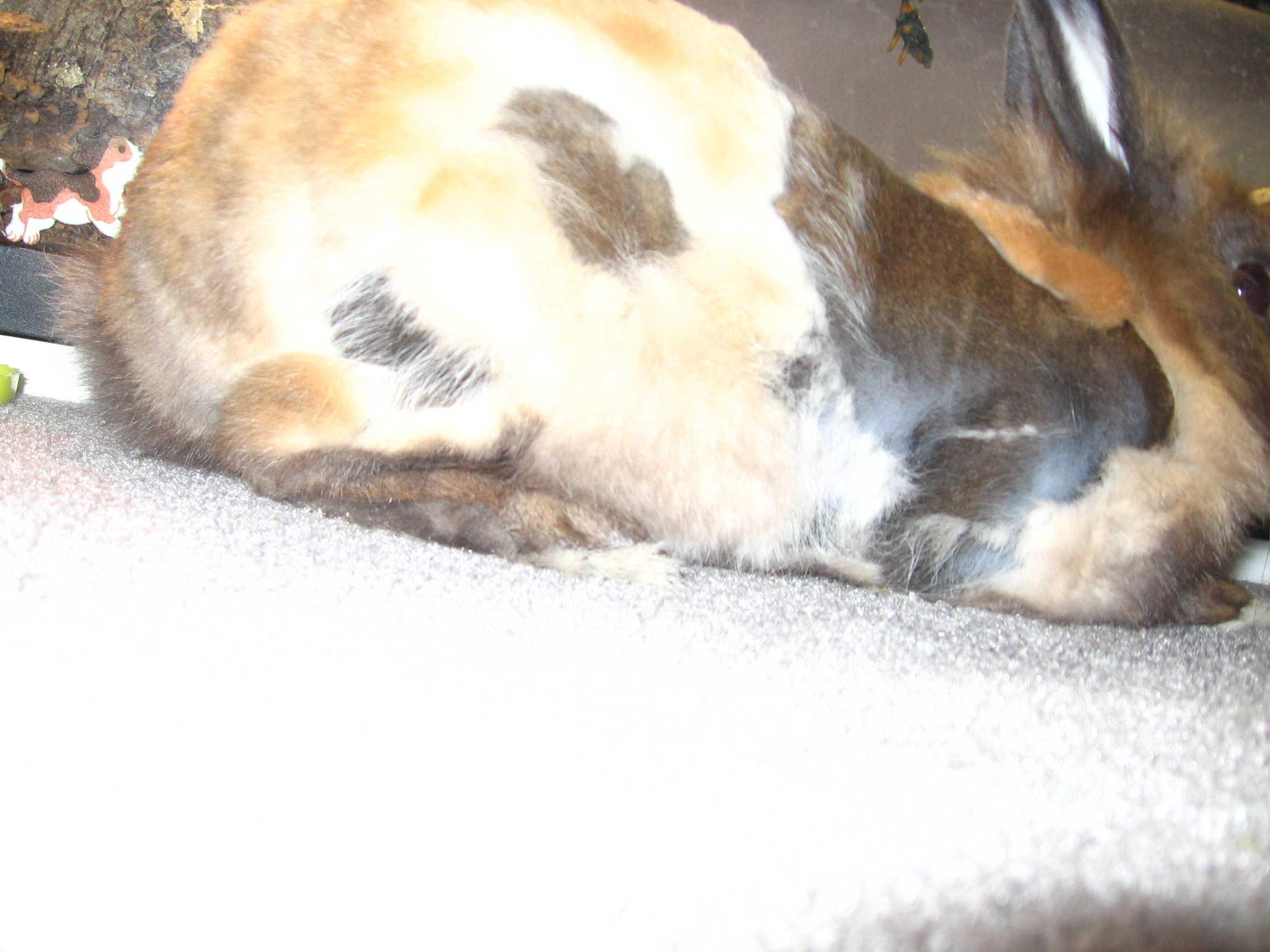 It's not parasites or anything. His fur is coming out in clumps, some say hes having a MAJOR molt others say it could be stress or something(these people are from my buny group)