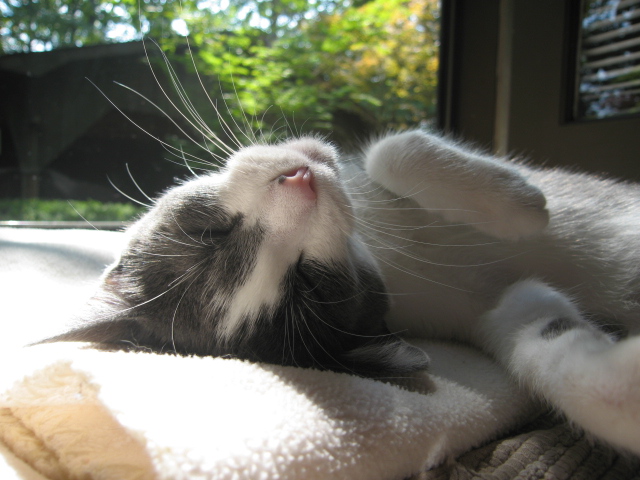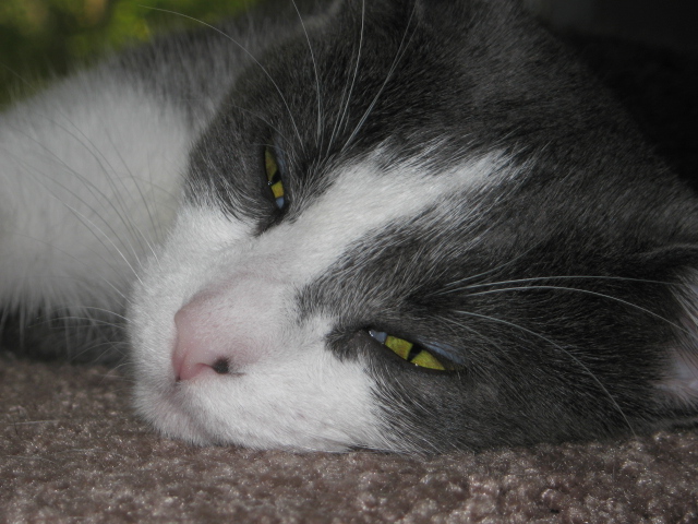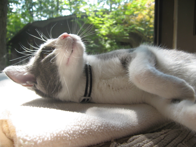 I have had Jenna for 3 months now and she has never gotten to lay in the sun. Our old cat, Frisky, would lay by the back door and sleep for hours while he was catching some rays. Yesterday..I thought Jenna might want to do the sameShe absolutely loved it..as you can tell by the pictures. She's a wonderful cat. Thanks for the comment.