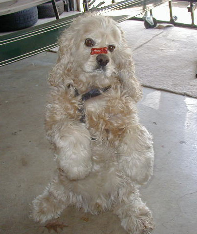 These pictures show DJ (Dog Johnson) doing some of his favorite things. Fetching the tennis ball out at the lake, performing stupid pet tricks for dad, and hanging out in the backyard.