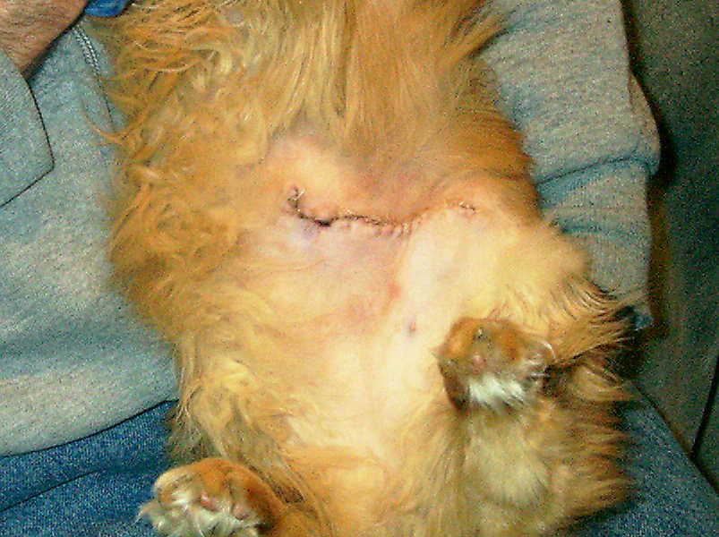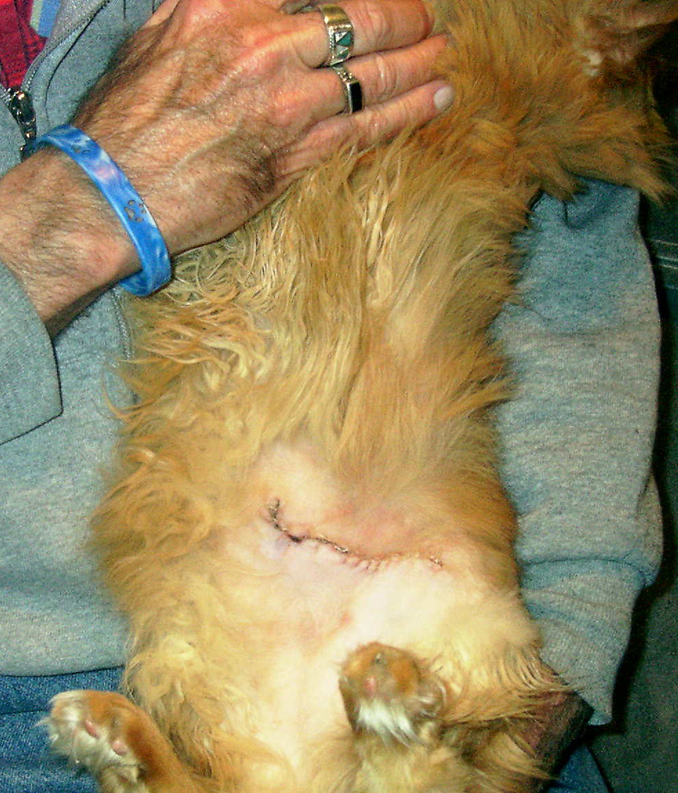 2)Amber.....had a cyst removed from her tummy. It was not INSIDE the body, but rather in the dermal layer. She has had it for quite a while but recently it doubled in size (to about the size of a pecan).